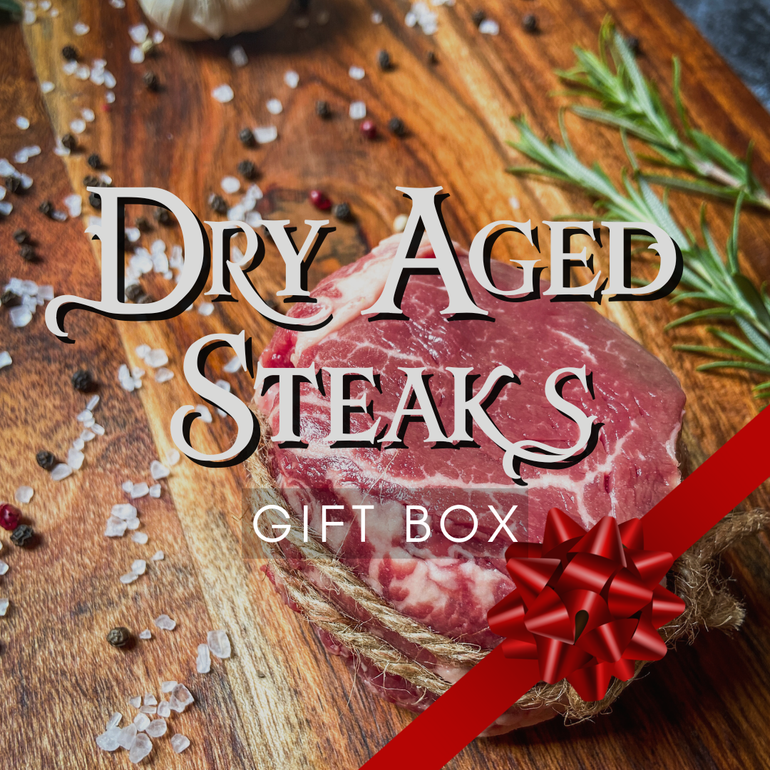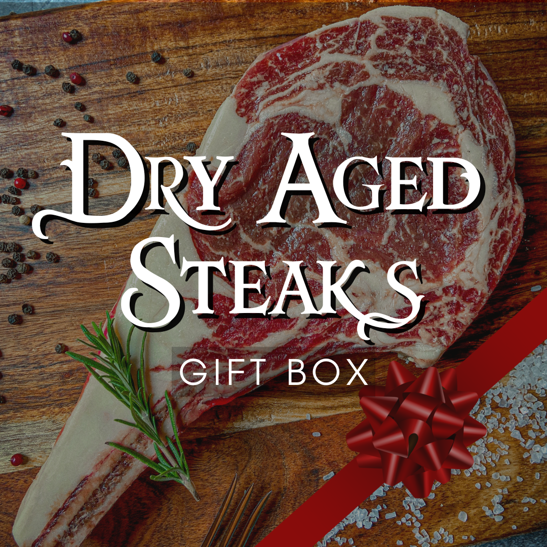 Elevate your celebrations with a gift that speaks to the steaklovers in your life – the Dry Aged Steaks Gift Box. From our farm to your table, each handcut and handpicked steak is a testament to exceptional quality, unparalleled flavor, and the art of dry aging.