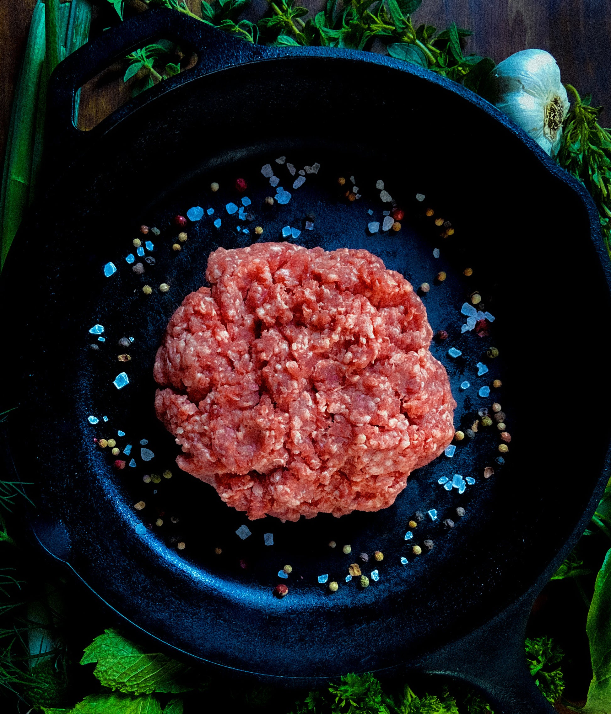 Two 1-lb packages of ground beef. Our 21-day dry aged ground beef has incredible flavor.